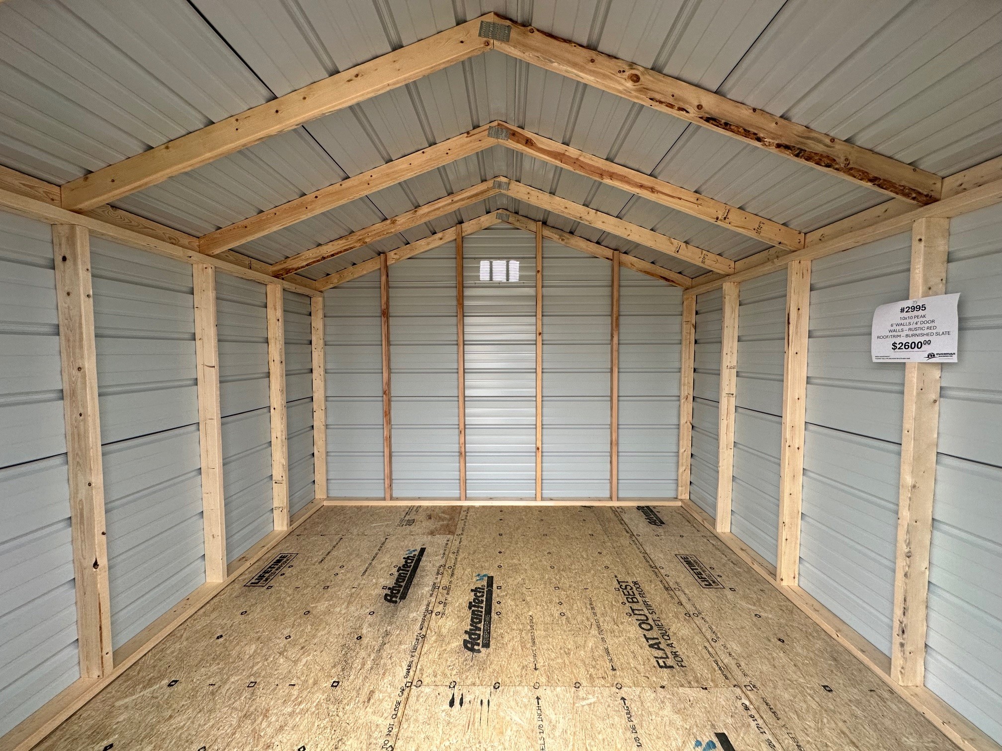 *Due to D.O.T. Wide Load restrictions, all 12’ wide buildings are 12’ wide or less at the wide point of the roof. Inside floor dimensions could be up to 9” less.