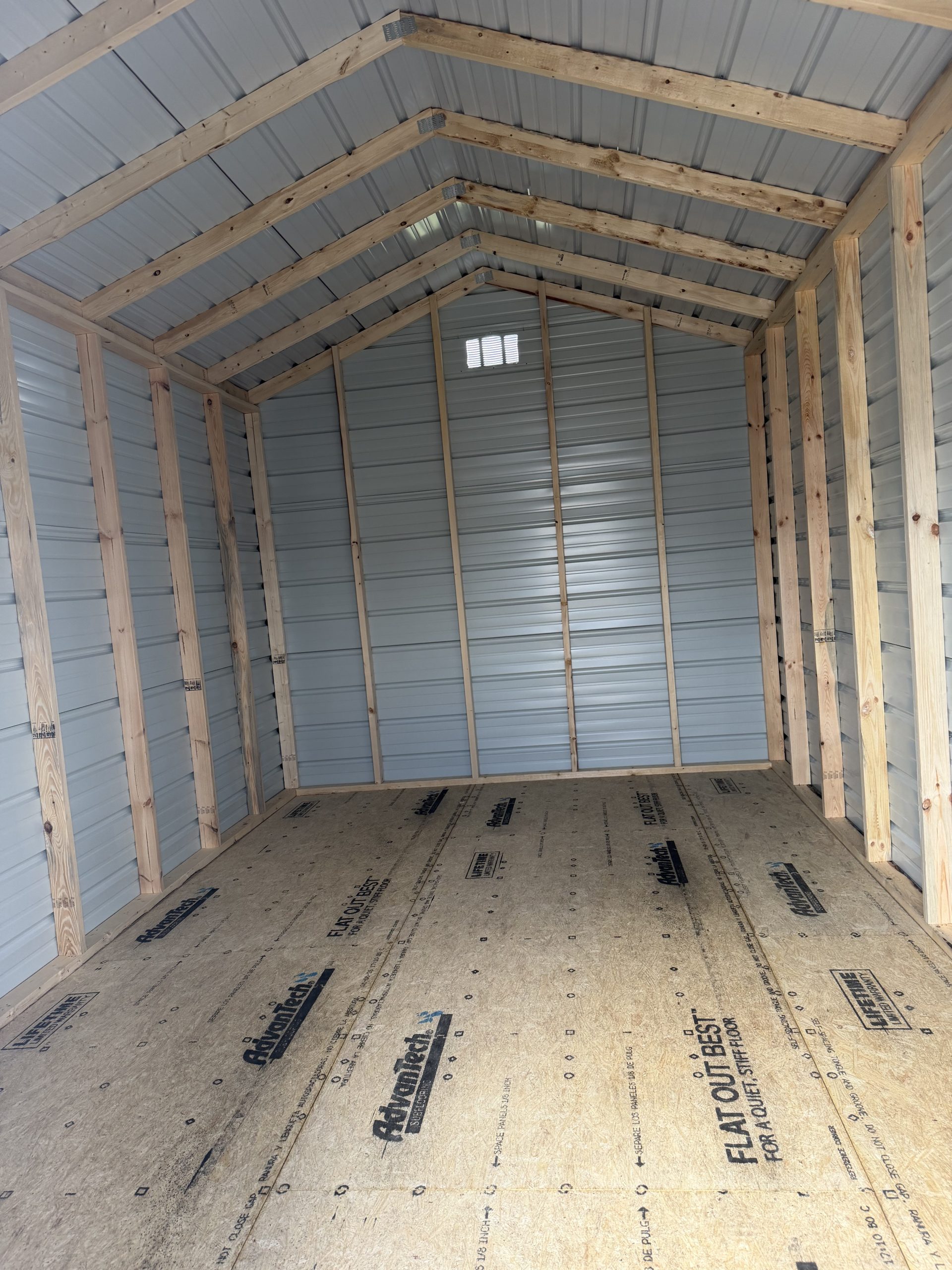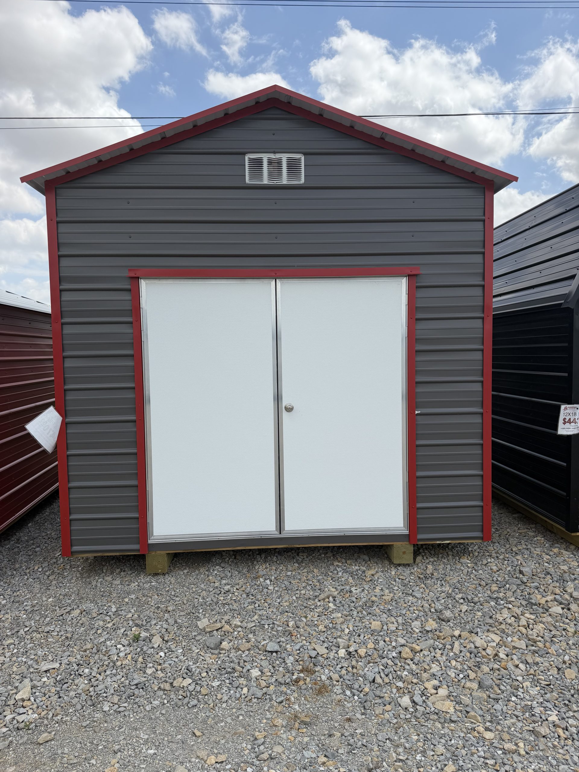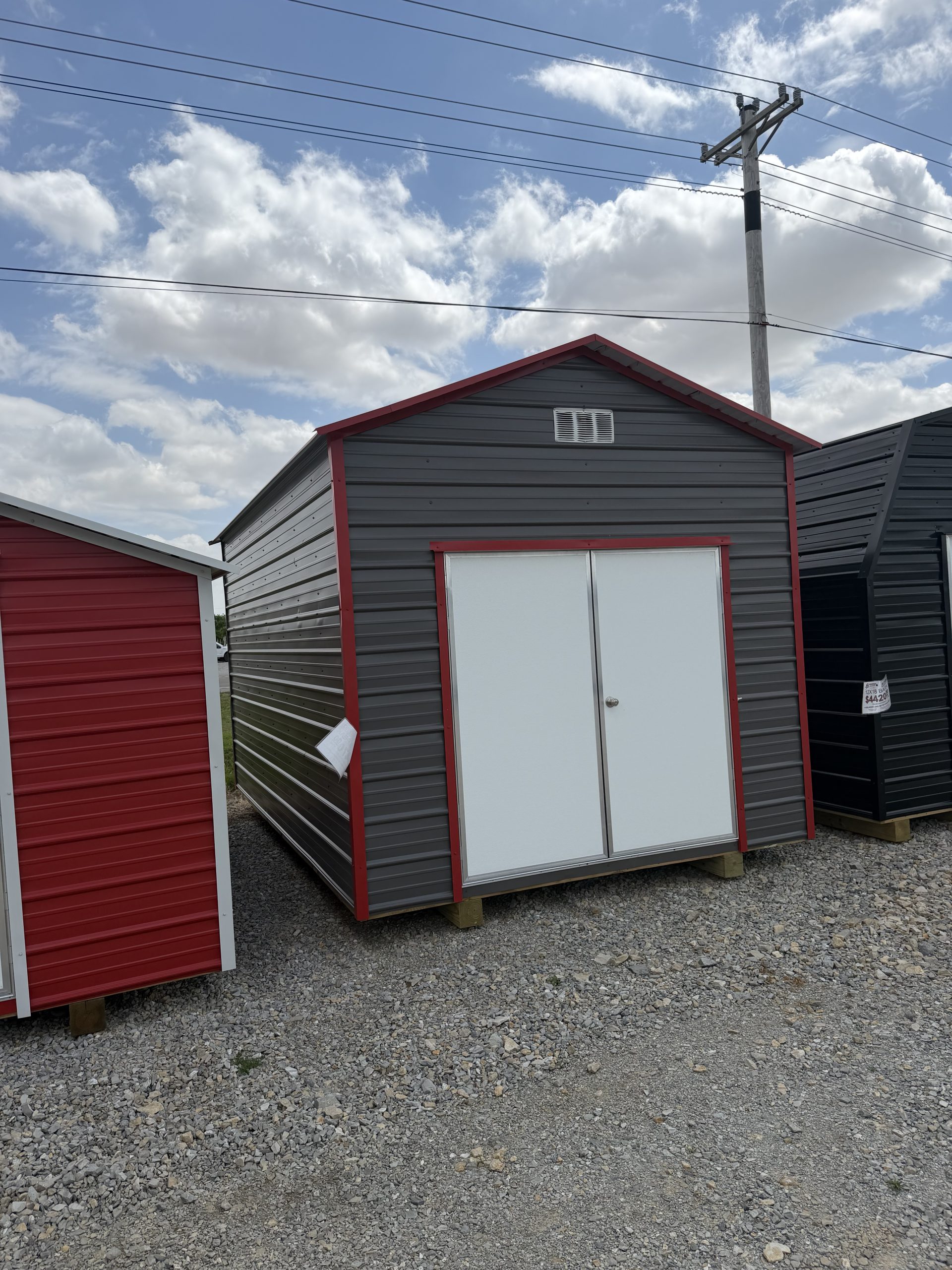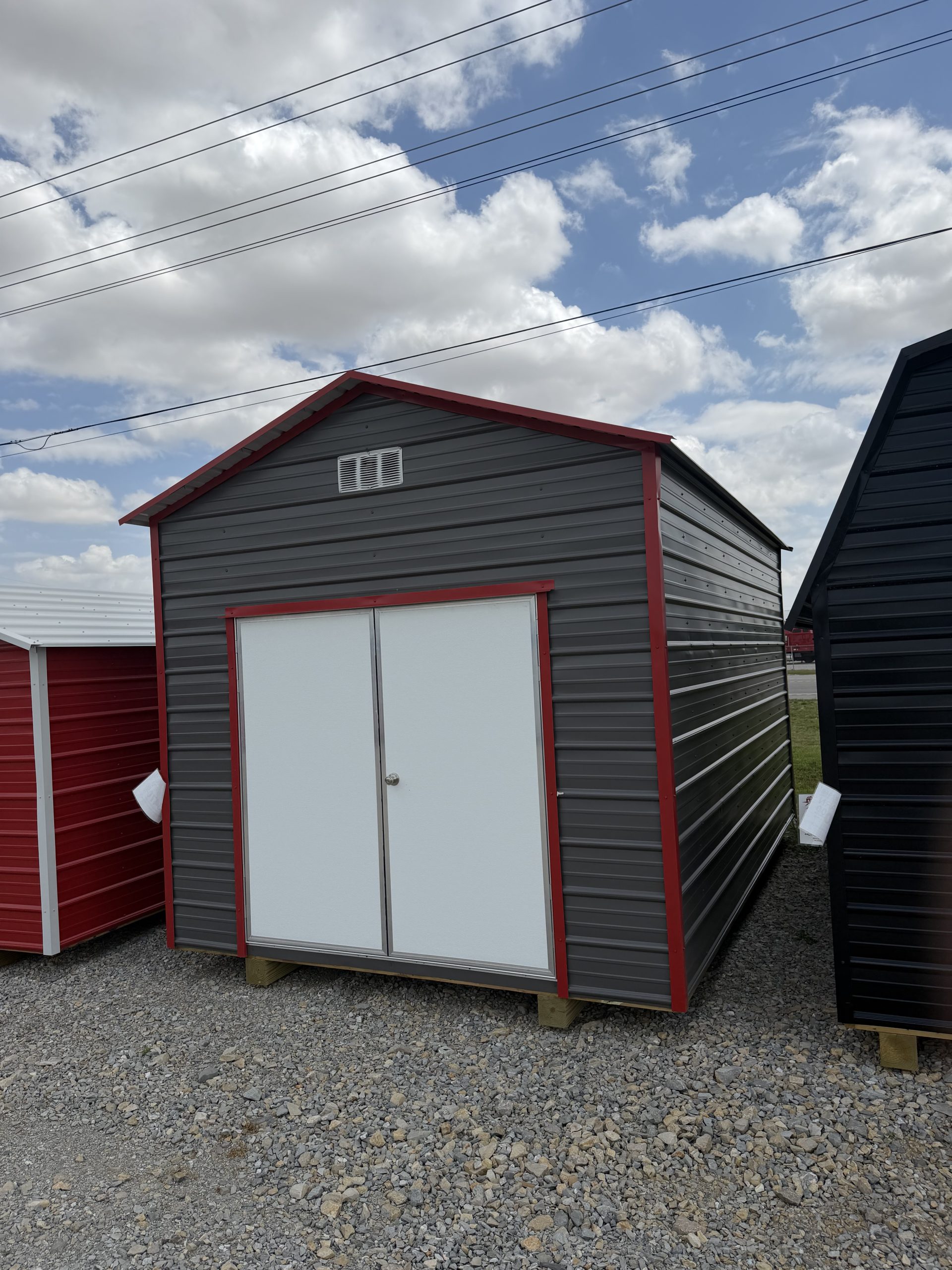 This 10x16x8 Peak on our Pocahontas lot gives you 160 square feet of space and is the perfect fit for your outdoor storage needs. From lawn equipment, tools, plants, to keepsakes, and so much more, this portable shed has plenty of room to provide all the ample space you are looking for either for storage. Please feel free to come by our lot here in Pocahontas at 3849 Hwy 67 South or call 870-202-8338 or 870-609-1900 to discuss all purchase options!
