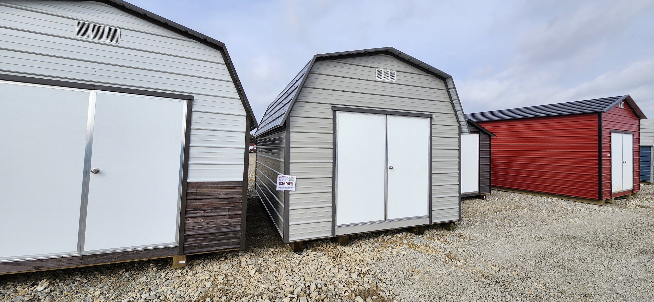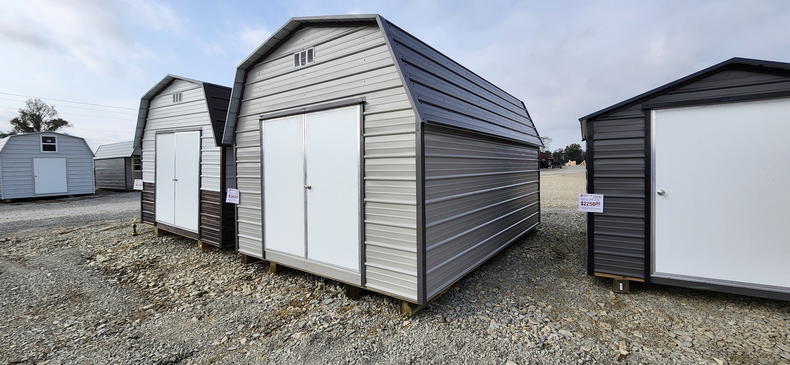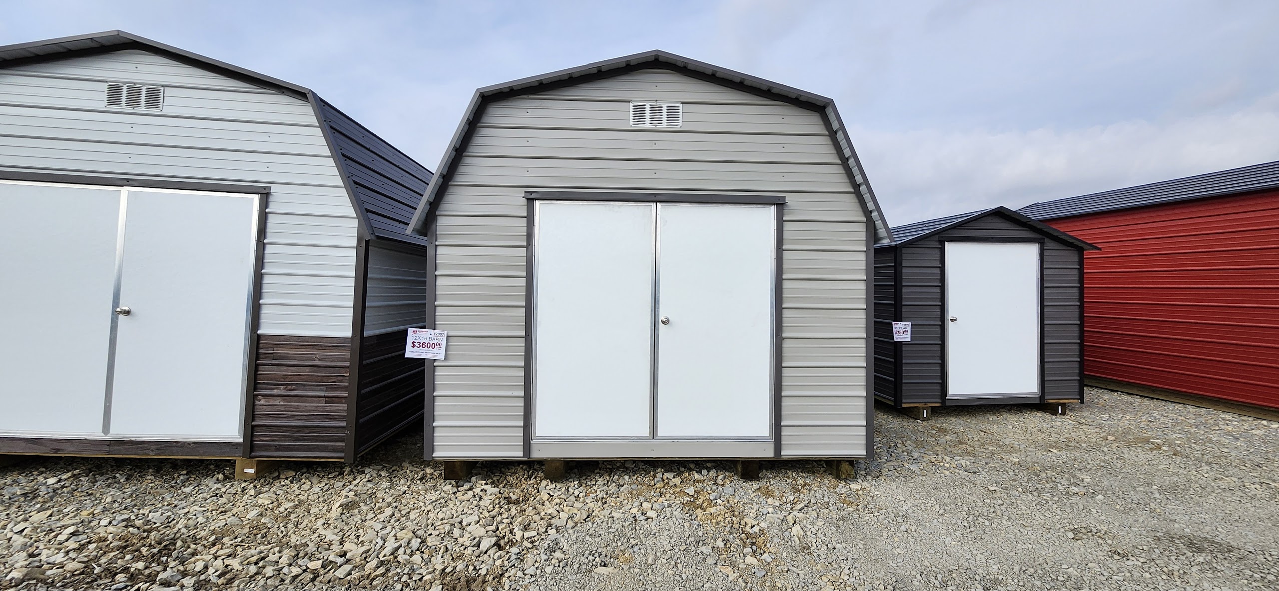 This 12x16 barn with our new barnwood metal used for a new wainscot look on our Pocahontas lot gives you 192 square feet of space and is the perfect fit for your outdoor storage needs. From lawn equipment, tools, plants, to keepsakes, and so much more, this portable shed has plenty of room to provide all the ample space you are looking for either for storage. Please feel free to come by our lot here at 3849 Hwy 67 South in Pocahontas, AR 72455 or call 870-202-8338 or 870-609-1900 to discuss all purchase options!