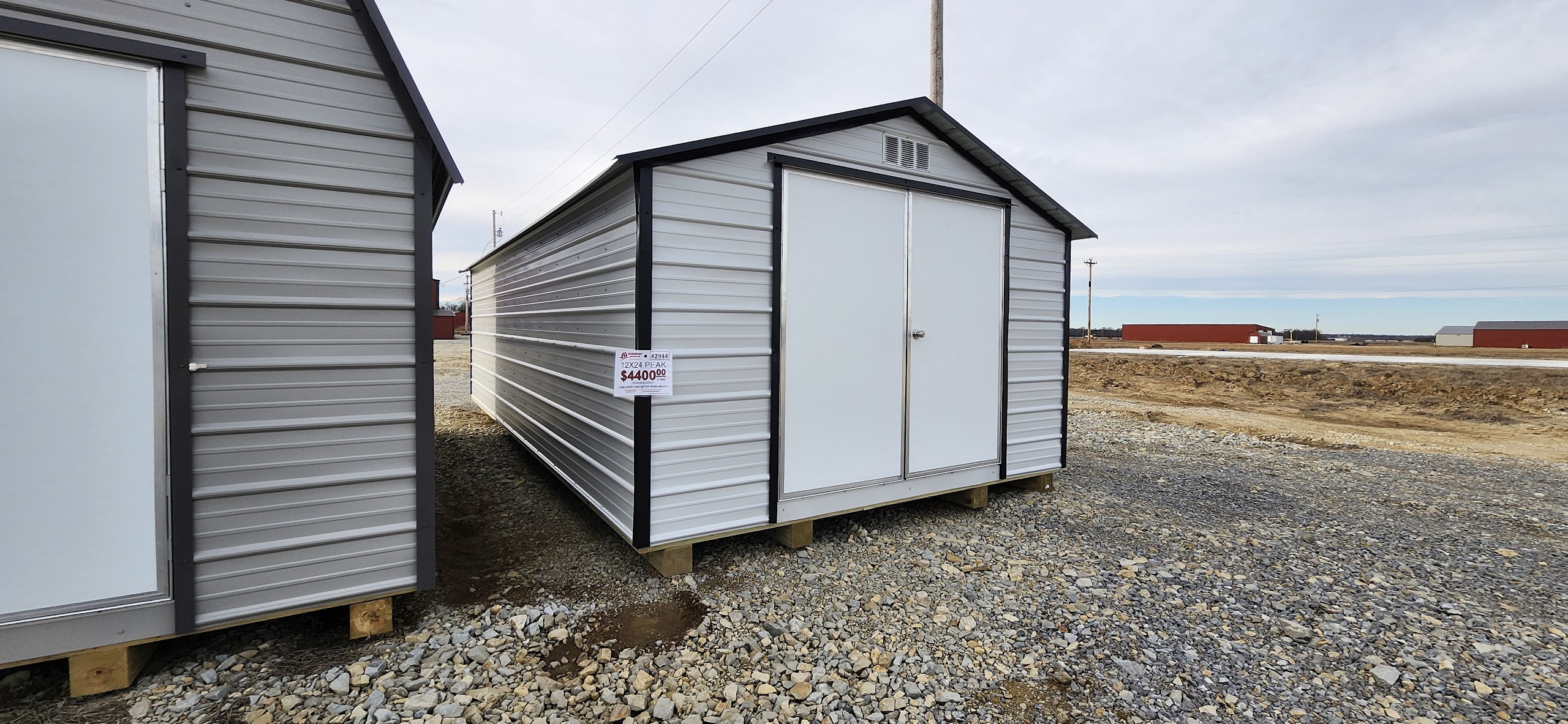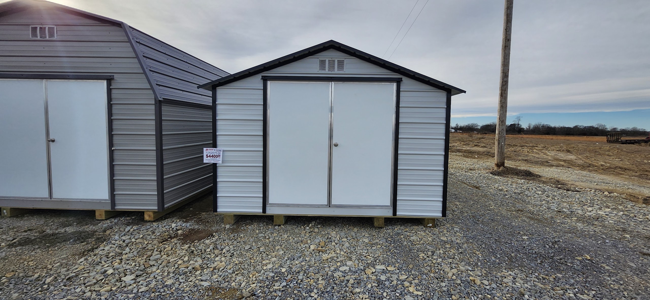This 12x24 peak on our Pocahontas lot gives you 288 square feet of space and is the perfect fit for your outdoor storage needs. From lawn equipment, tools, plants, to keepsakes, and so much more, this portable shed has plenty of room to provide all the ample space you are looking for either for storage. Please feel free to come by our lot here in Pocahontas at 3849 Hwy 67 South or call 870-202-8338 or 870-609-1900 to discuss all purchase options!