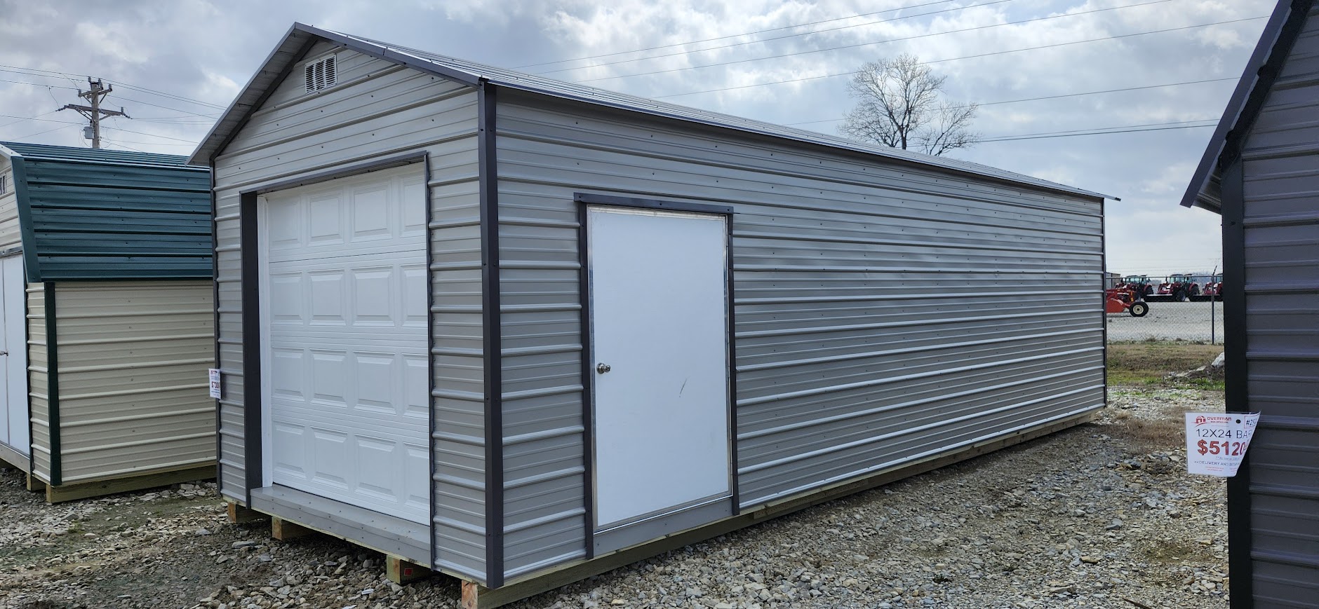 12x30x8 Peak w/ Garage Door – Ash Gray and Charcoal (#2986)