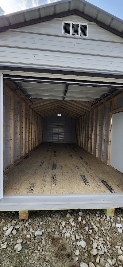 This 12x30 peak on our Pocahontas lot gives you 360 square feet of space and is the perfect fit for your outdoor storage needs. With this 8x7 garage door, you have all kinds of easy access for any mowers or other wheeled access you may need. From lawn equipment, tools, plants, to keepsakes, and so much more, this portable shed has plenty of room to provide all the ample space you are looking for either for storage. Please feel free to come by our lot here in Pocahontas at 3849 Hwy 67 South or call 870-202-8338 or 870-609-1900 to discuss all purchase options!
