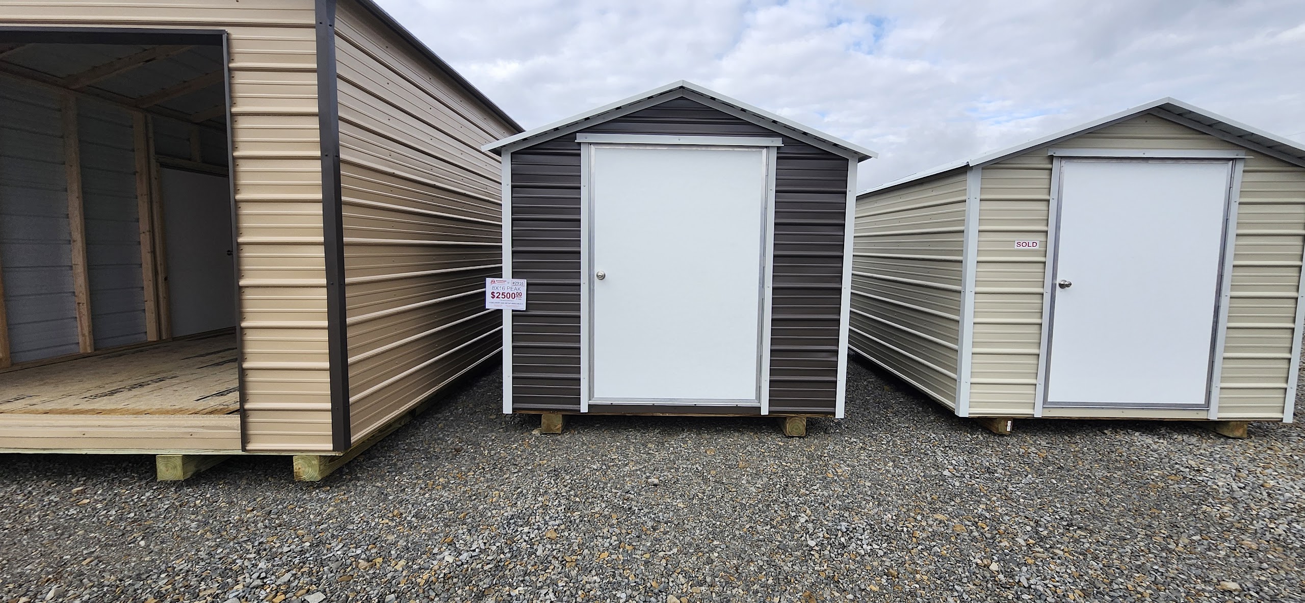 This 8x16 peak on our Pocahontas lot gives you 128 square feet of space and is the perfect fit for your outdoor storage needs. From lawn equipment, tools, plants, to keepsakes, and so much more, this portable shed has plenty of room to provide all the ample space you are looking for either for storage. Please feel free to come by our lot here at 3849 Hwy 67 South in Pocahontas, AR 72455 or call 870-202-8338 or 870-609-1900 to discuss all purchase options! We do provide 24, 36, and 48-month rent-to-own options as well as a 90 days same as cash payment plan! We look forward to hearing from you and helping to find the perfect storage solution to fit your needs!